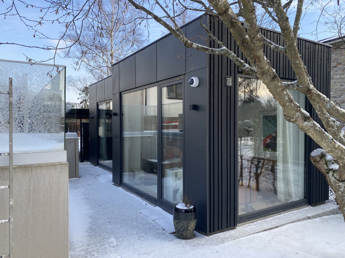 Attefallshus med speciallackad plåtfasad, Näsby Park