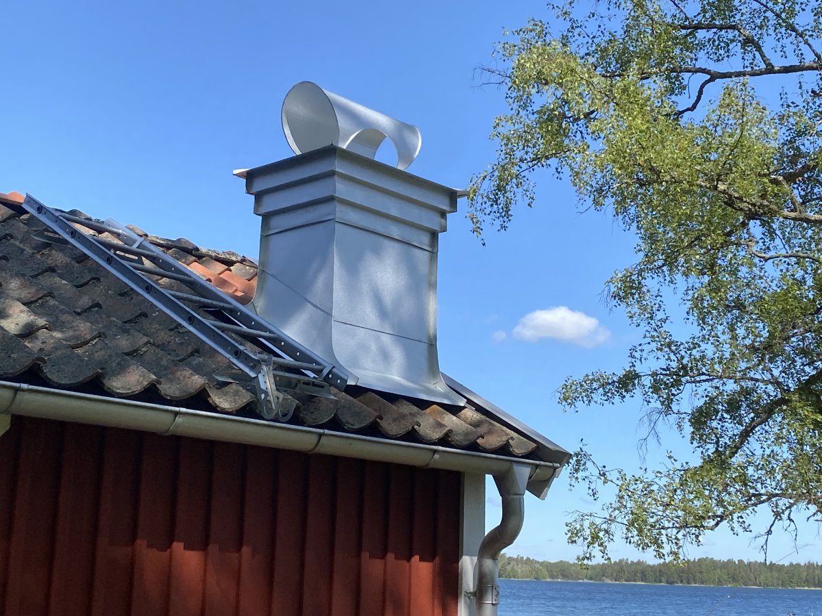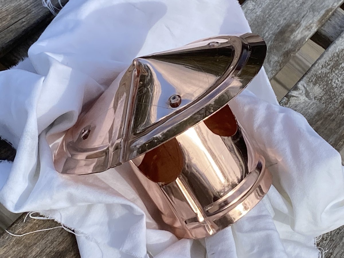 Ventilationsröret från den gamla jordkällaren var av koppar. Då behövdes en hatt i samma material.